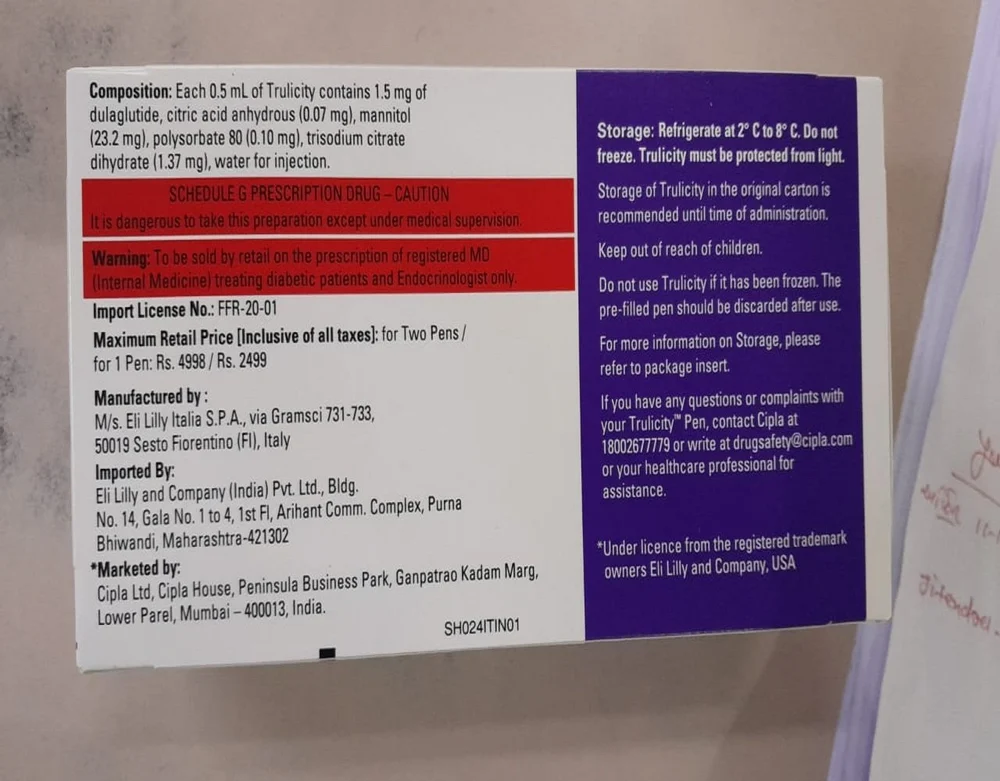 Trulicity is available in pre-filled pens containing a solution for subcutaneous injection, with options for 0.75 mg and 1.5 mg doses. Your doctor will determine the appropriate dosage for your needs. For monotherapy, the recommended dose is 0.75 mg once a week, while for combination therapy, the dose may be increased to 1.5 mg once a week. In certain cases, especially for more vulnerable patients over 75 years of age, your doctor may begin with a lower initial dose.